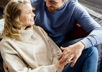 M & C vivent à Perpignan, ils sont français. Passionnés de paysages hivernaux, ils ont profité d’un bain nordique et du sauna avec vu sur la vallée enneigée avant la cérémonie.